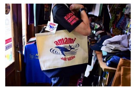 鹿児島県奄美市 ホエールウォッチングAMAMIトートバックとステッカーのセット 9,000円 出典:ふるなび
