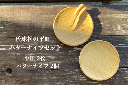 沖縄県国頭村 琉球松(リュウキュウマツ)の平皿(大)&バターナイフセット 33,000円 出典:ふるなび