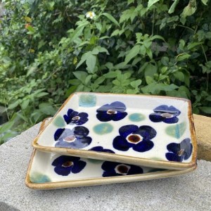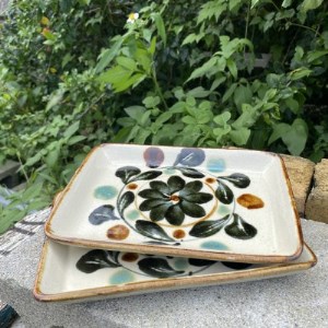 ヤチムン 角皿花紋 2枚セット エドメ陶房【1375111】