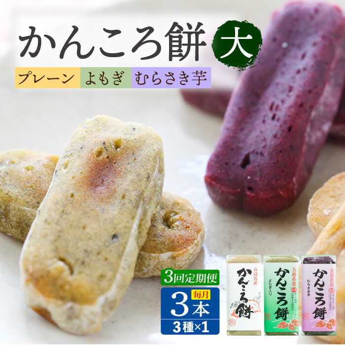 【3回定期便】かんころ餅3本(大) (プレーン×1/紫芋×1/よもぎ×1)五島市/真鳥餅店[PAP008]