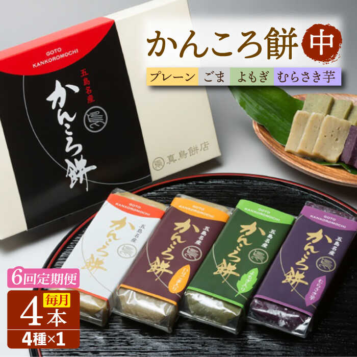 【6回定期便】かんころ餅4本(中)(プレーン×1/ごま×1/紫芋×1/よもぎ×1) 五島市/真鳥餅店[PAP012]