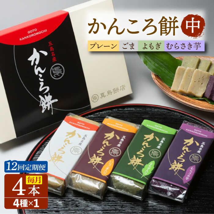 【12回定期便】かんころ餅4本(中)(プレーン×1/ごま×1/紫芋×1/よもぎ×1) 五島市/真鳥餅店[PAP013]