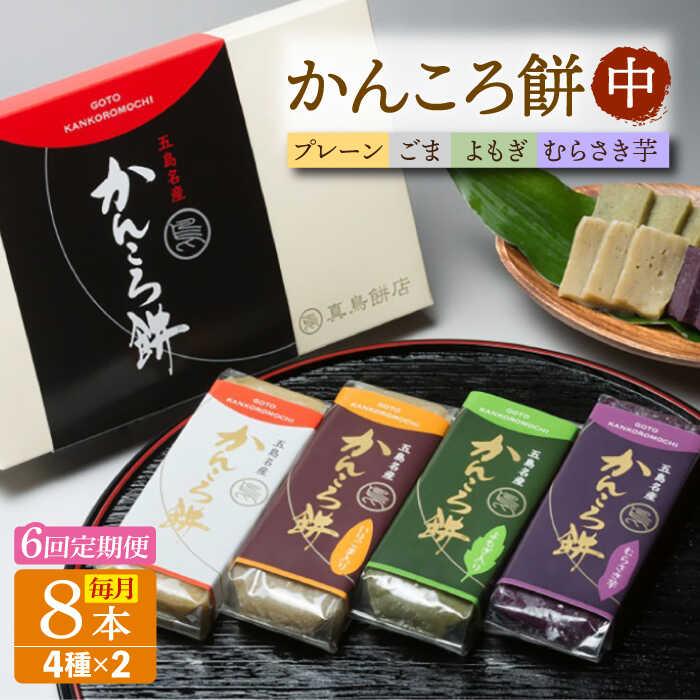 【6回定期便】かんころ餅8本(中)(プレーン×2/ごま×2/紫芋×2/よもぎ×2)五島市/真鳥餅店[PAP019]