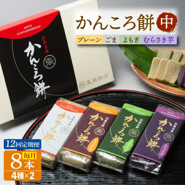 【12回定期便】かんころ餅8本(中)(プレーン×2/ごま×2/紫芋×2/よもぎ×2)五島市/真鳥餅店[PAP020]
