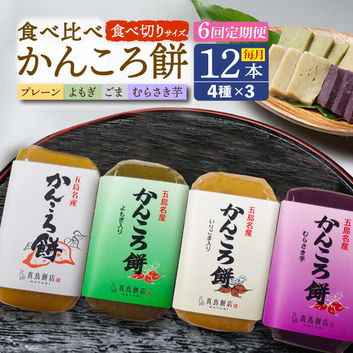 【6回定期便】食べきりサイズ かんころ餅12本(プレーン×3/ごま×3/よもぎ×3/紫芋×3)五島市/真鳥餅店[PAP024]