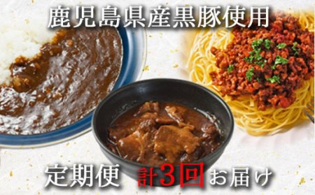 鹿児島県薩摩川内市 Z-757 【定期便3回】鹿児島県産黒豚100% 合計6袋 総菜・カレー・ミートソース レンジで簡単レトルト3種 7,000円 出典:ふるなび