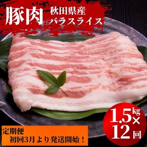秋田県にかほ市 3月から発送!秋田県産 豚バラ 肉の 定期便 豚バラスライス 1.5kg×12ヵ月コース(小分け) 140,000円 出典:ふるなび