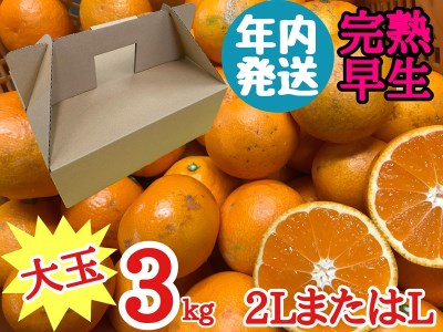 和歌山県有田川町 《年内発送》訳あり傷多め【完熟早生・有田みかん】大玉約3kg(2LまたはL)【南泰園】[0959] 7,000円 出典:ふるなび