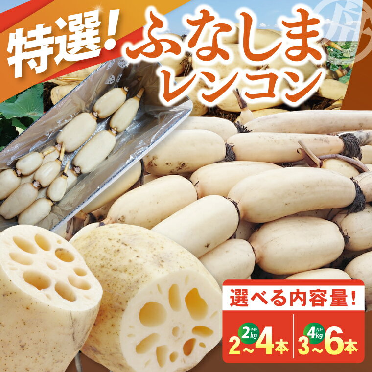 【選べる内容量】【特選】ふなしま蓮根 (4kg箱)3~6本 or(2kg箱)2~4本|レシピ 高品質 幻の蓮根 老舗 希少品種 柔らかい(82-01-1)