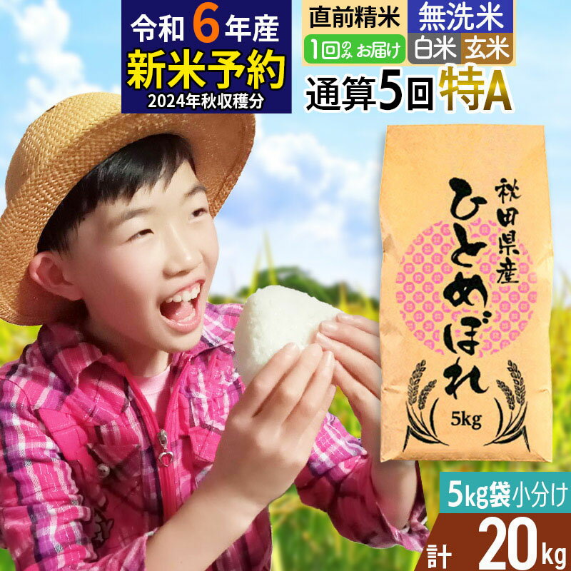 《1回のみお届け》令和7年産 【無洗米/白米】通算5回特A 秋田県産ひとめぼれ 20kg (5kg×4袋)