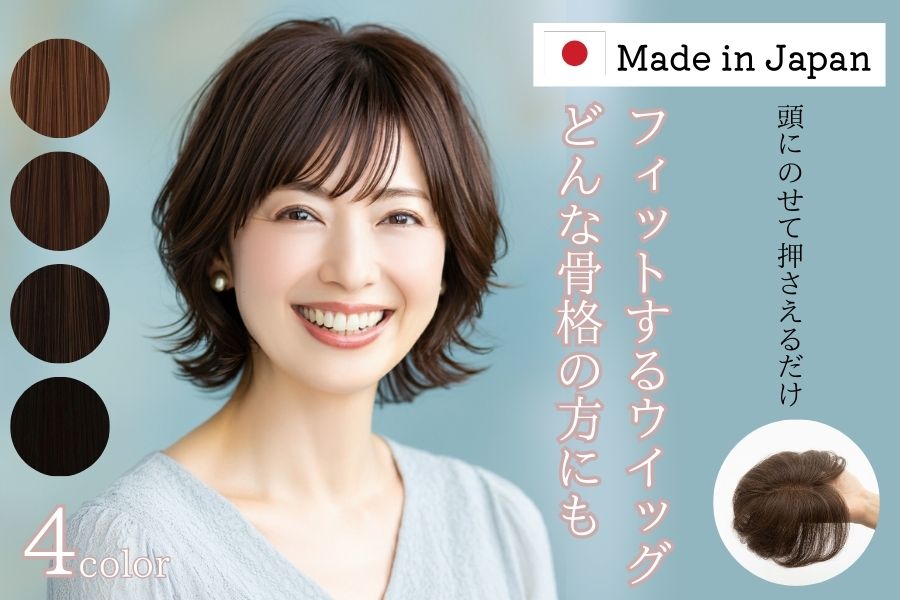 広陵町産ウイッグ (ダークブラウン)/// おしゃれ 柔らかい 医療用 抗がん剤 医療用ウイッグ 通気性 吸水性 高品質 日本製 奈良県 広陵町