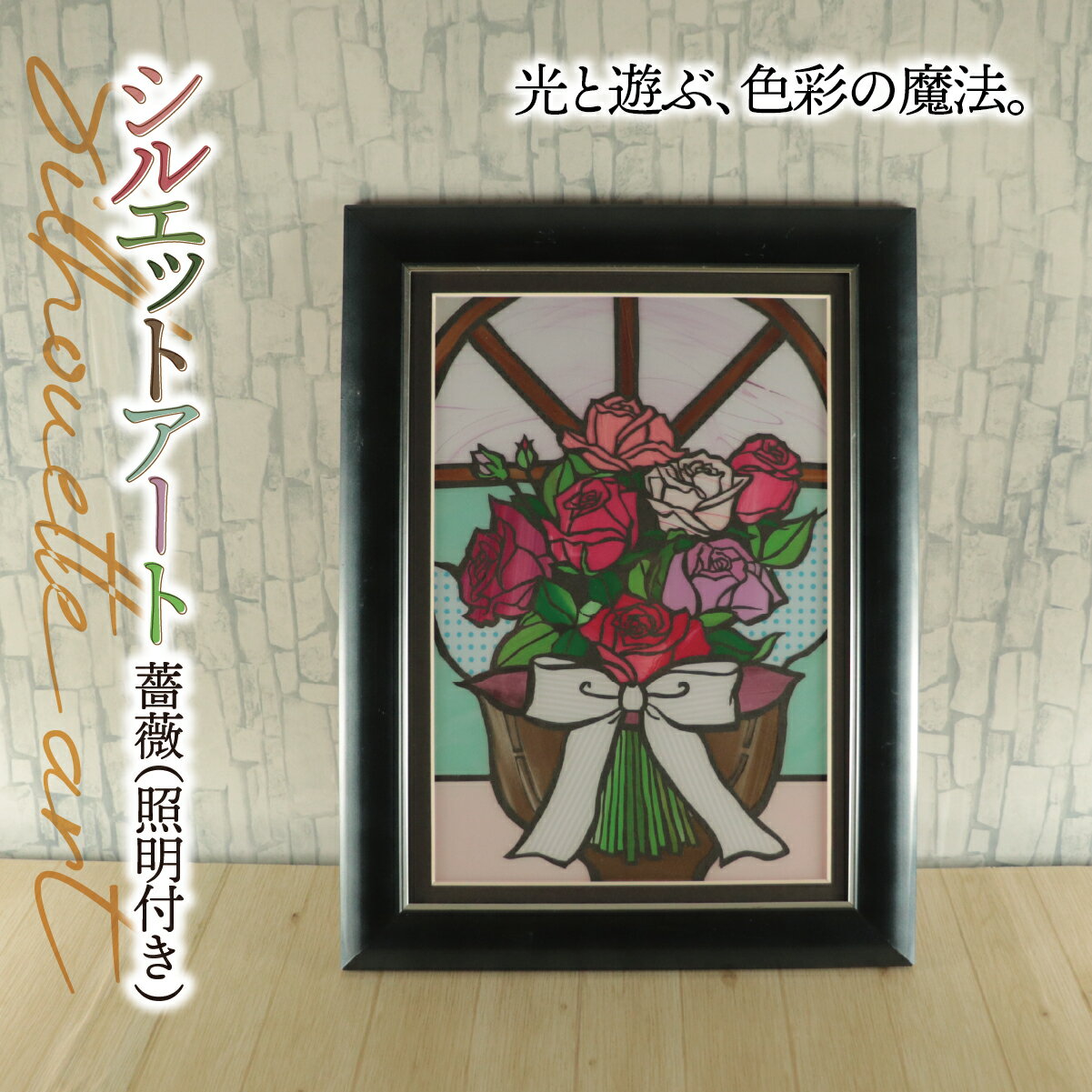 シルエットアート 薔薇 (照明付き)|ステンドグラス風 バラ ノスタルジック 光る 飾り インテリア 母の日 結婚祝い 誕生日 新築祝い プロポーズ ハンドメイド 手作り 一点もの ギフト プレゼント 割れにくい