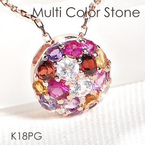山梨県南アルプス市 25-9-2 ネックレス K18PG ピンクゴールド 18金 レディース カラーストーン パヴェ ドーム型 ペンダント 250,000円 出典:ふるなび
