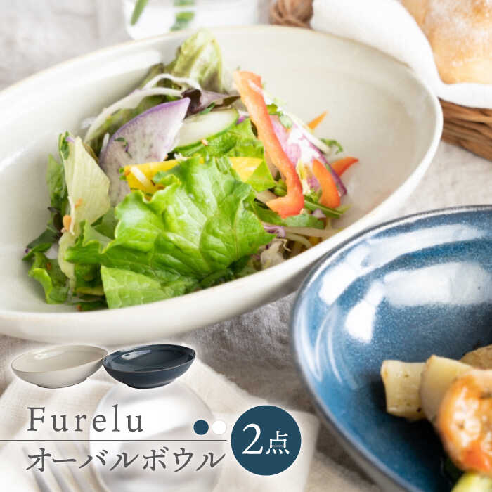 【波佐見焼】Furelu ゆず肌 オーバルボウル カレー皿 2枚セット[ネイビー×ホワイト]【藍染窯】 [JC97]