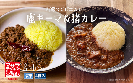 熊本県産山村 阿蘇の鹿キーマ&阿蘇の猪カレー【4食セット】《60日以内に出荷予定(土日祝除く)》 17,500円 出典:ふるなび