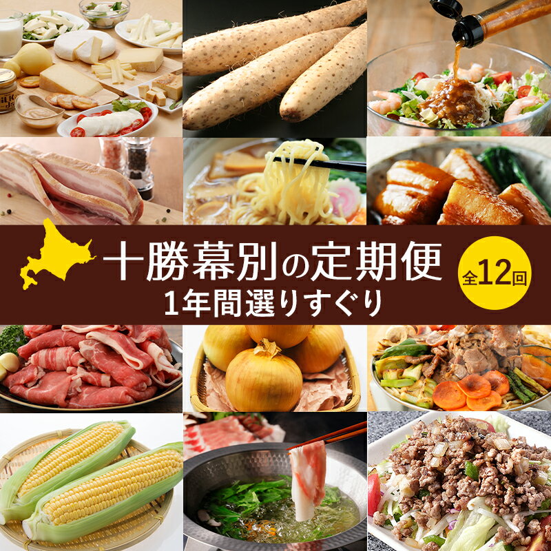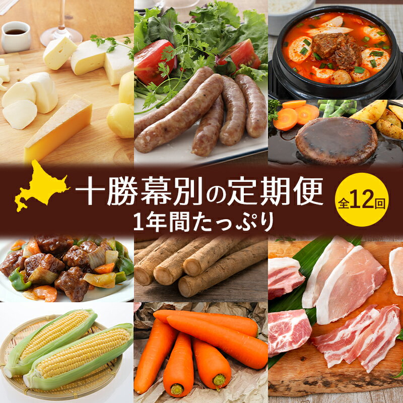 十勝幕別の定期便 1年間選りすぐり 全12回 【 チーズ 蜂蜜 ハンバーグ 麺 ウインナー ベーコン 餃子 グラタン 麺 和菓子 スイーツ カレー 牛 豚 野菜 北海道 十勝 幕別 】