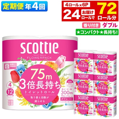 《4回定期便》トイレットペーパー 3倍長持ち 24個 ダブル|15_nsc-100604da