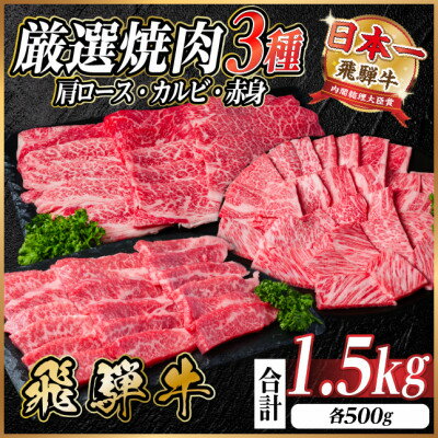 岐阜県羽島市 飛騨牛 厳選焼肉3種(肩ロース・カルビ・赤身)1.5kg(各500g)【配送不可地域:離島】【1668600】 36,000円 出典:楽天ふるさと納税
